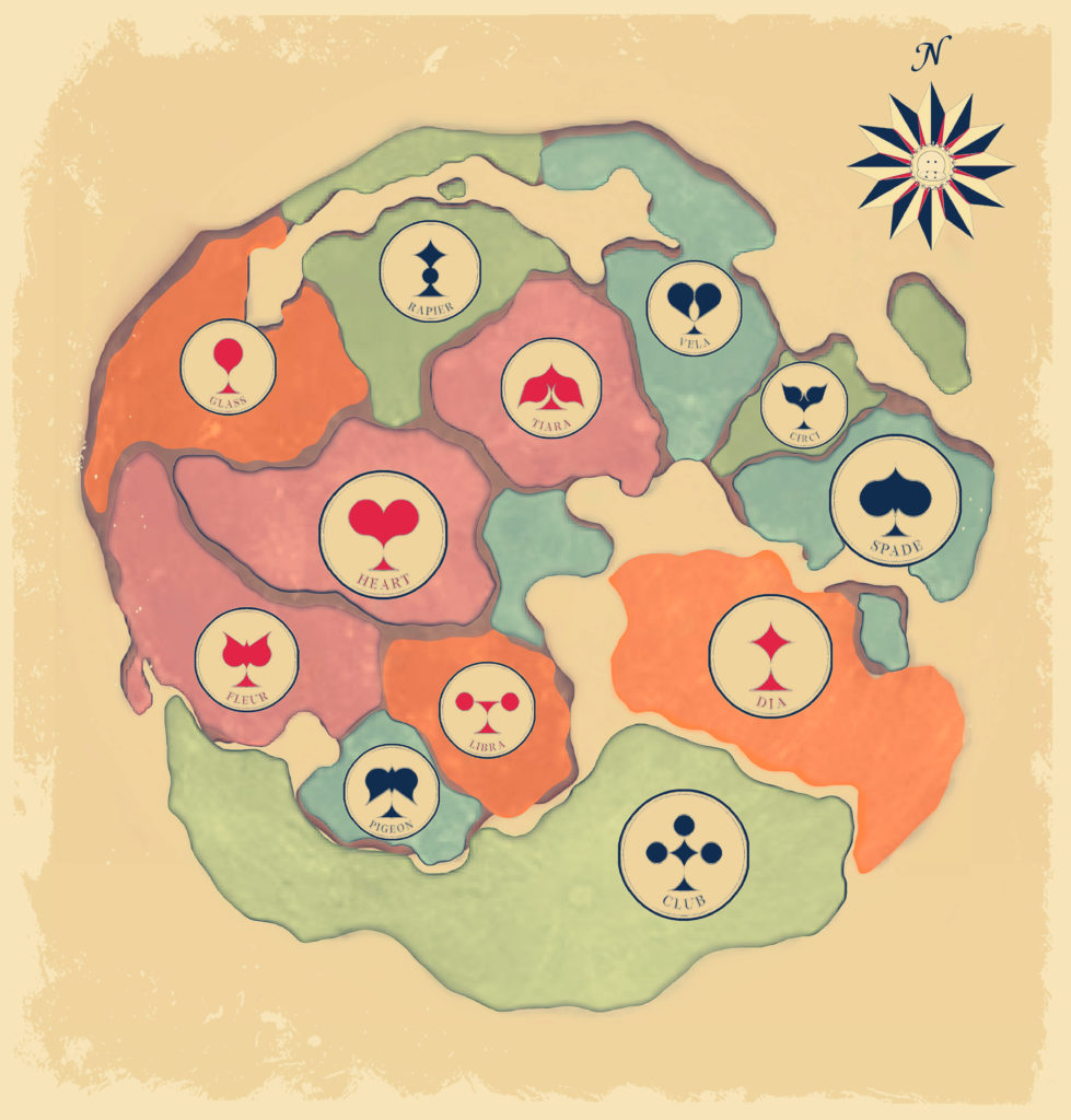 ハート・ダイヤ・クラブ・スペードが四大帝国になる前の12の王国だった頃の世界地図